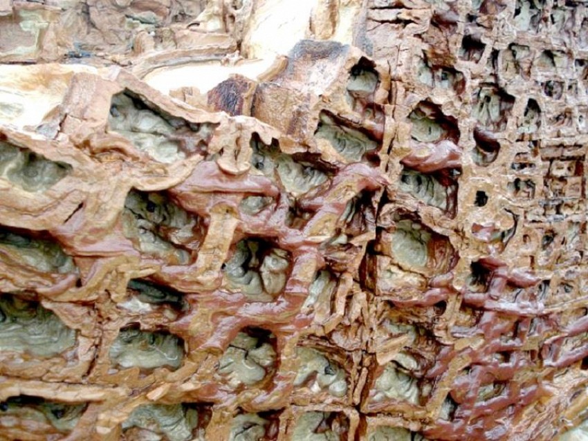 Khi đã đi qua bãi đá, nhìn thấy ngay "thanh sô cô la" sừng sững phía trước. Những vệt núi vẽ loằng ngoằng đủ hình đủ dạng cùng màu nâu đỏ sậm tuyệt đẹp và độc đáo. Các mảng màu đậm nhạt khác biết cùng các tầng khác nhau mà bạn có thể leo lên, dạo bộ và nghỉ chân. Nhiều du khách tỏ ra mê mẩn với thanh sô cô la thiên nhiên đặc biệt này đến nỗi quên mất là trời đã tối và nước đã dâng lên.